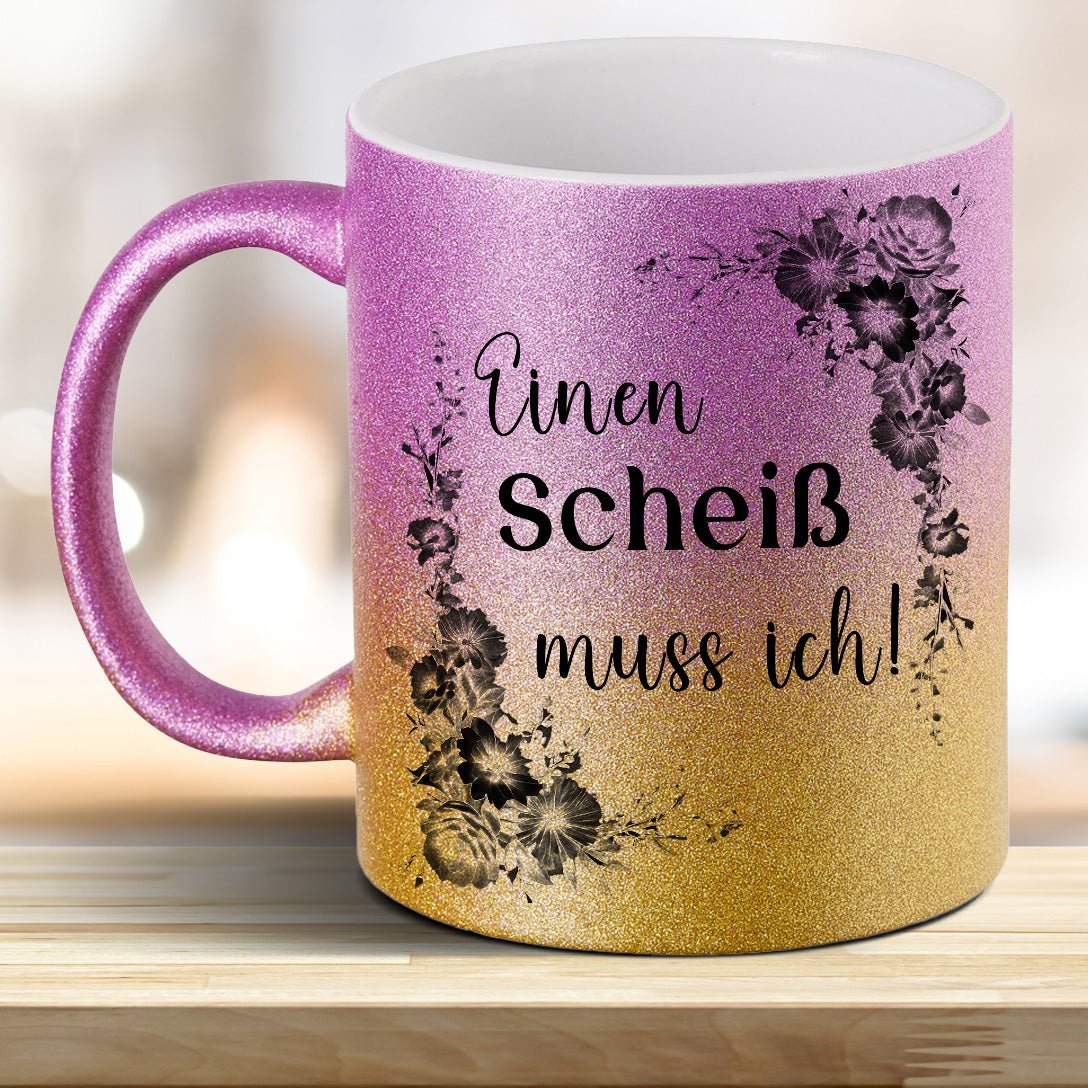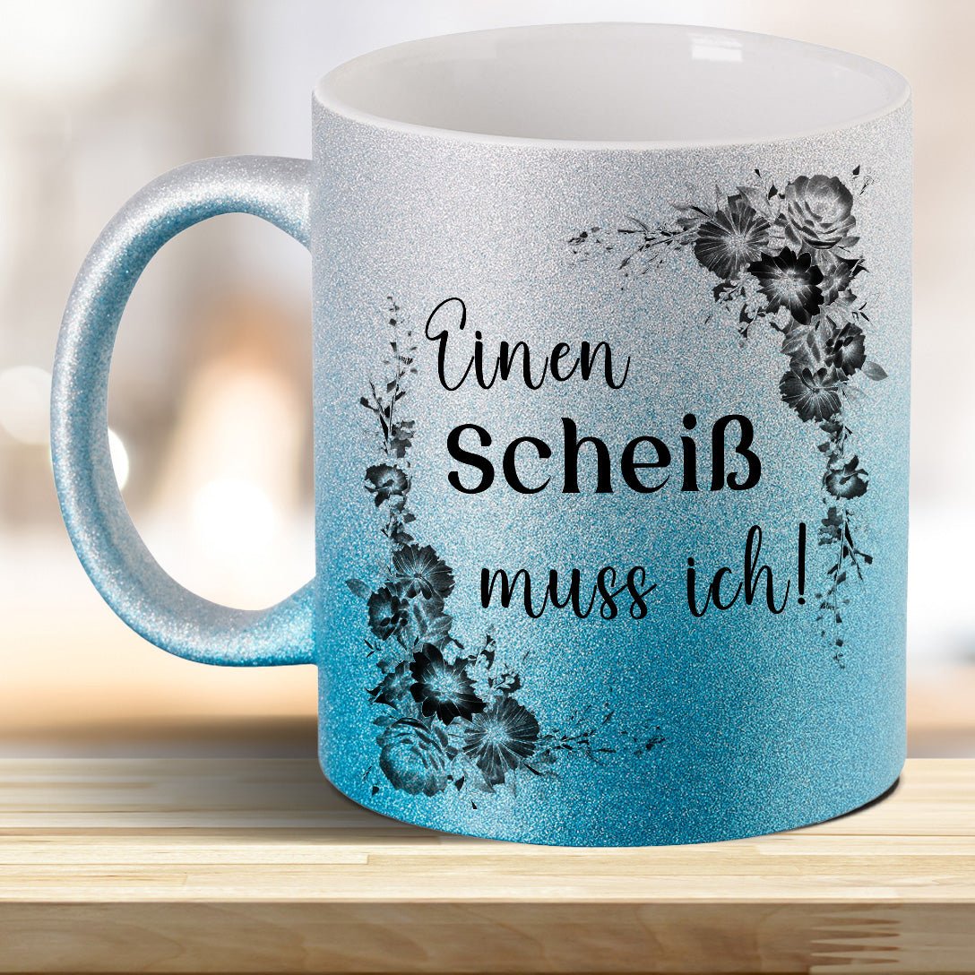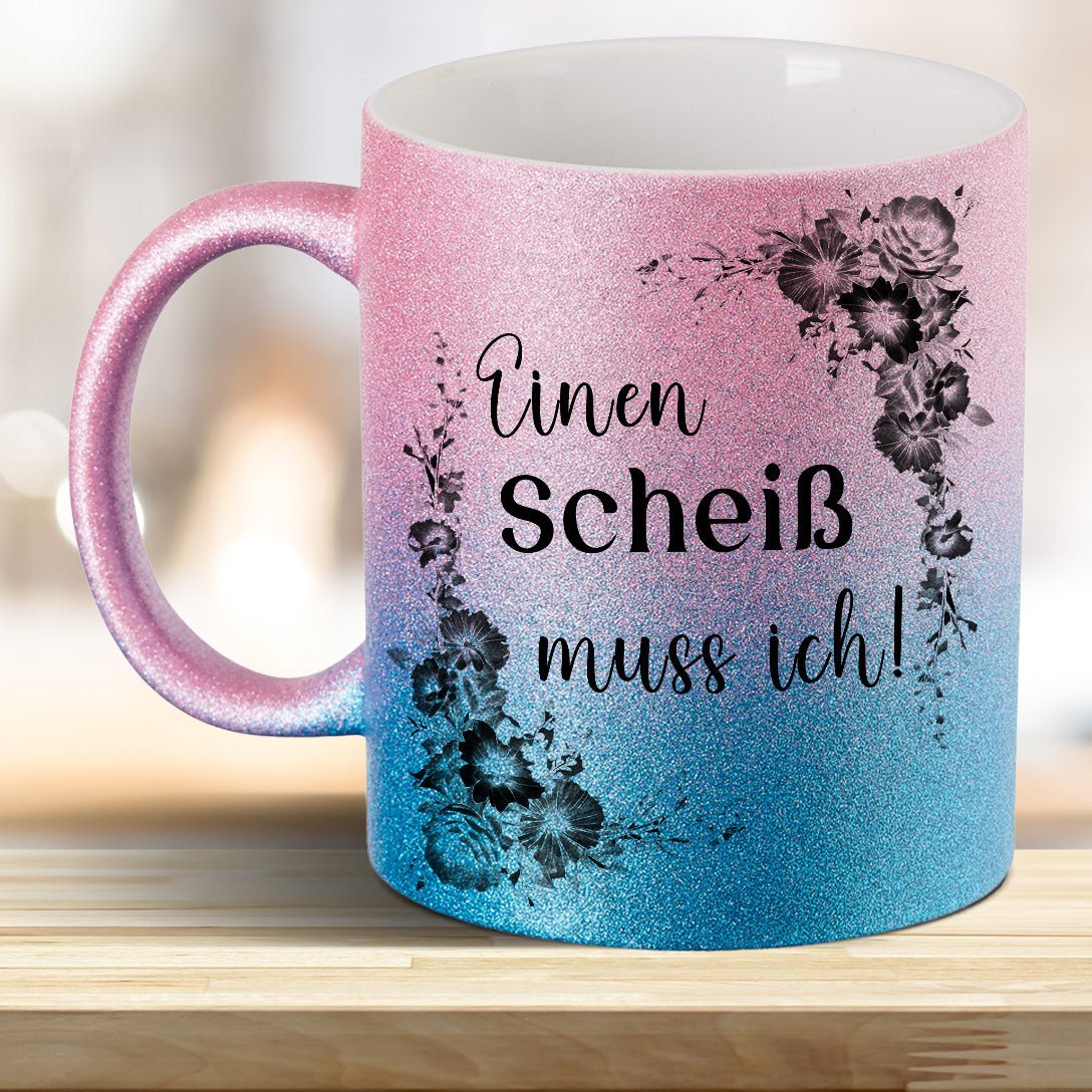 Entdecke unsere Einen Scheiß muss ich! Tasse mit Glitzereffekt mit trendigen Farben