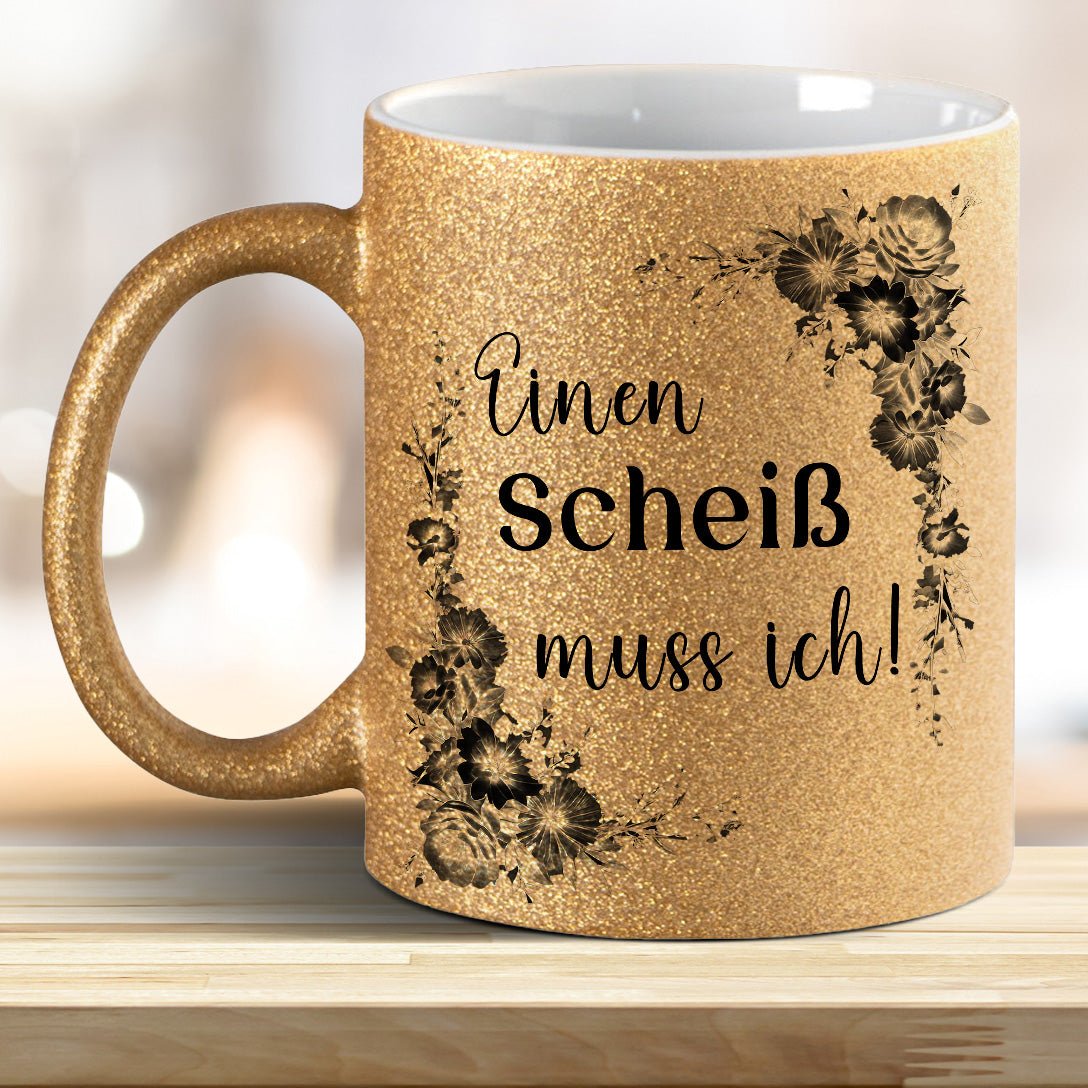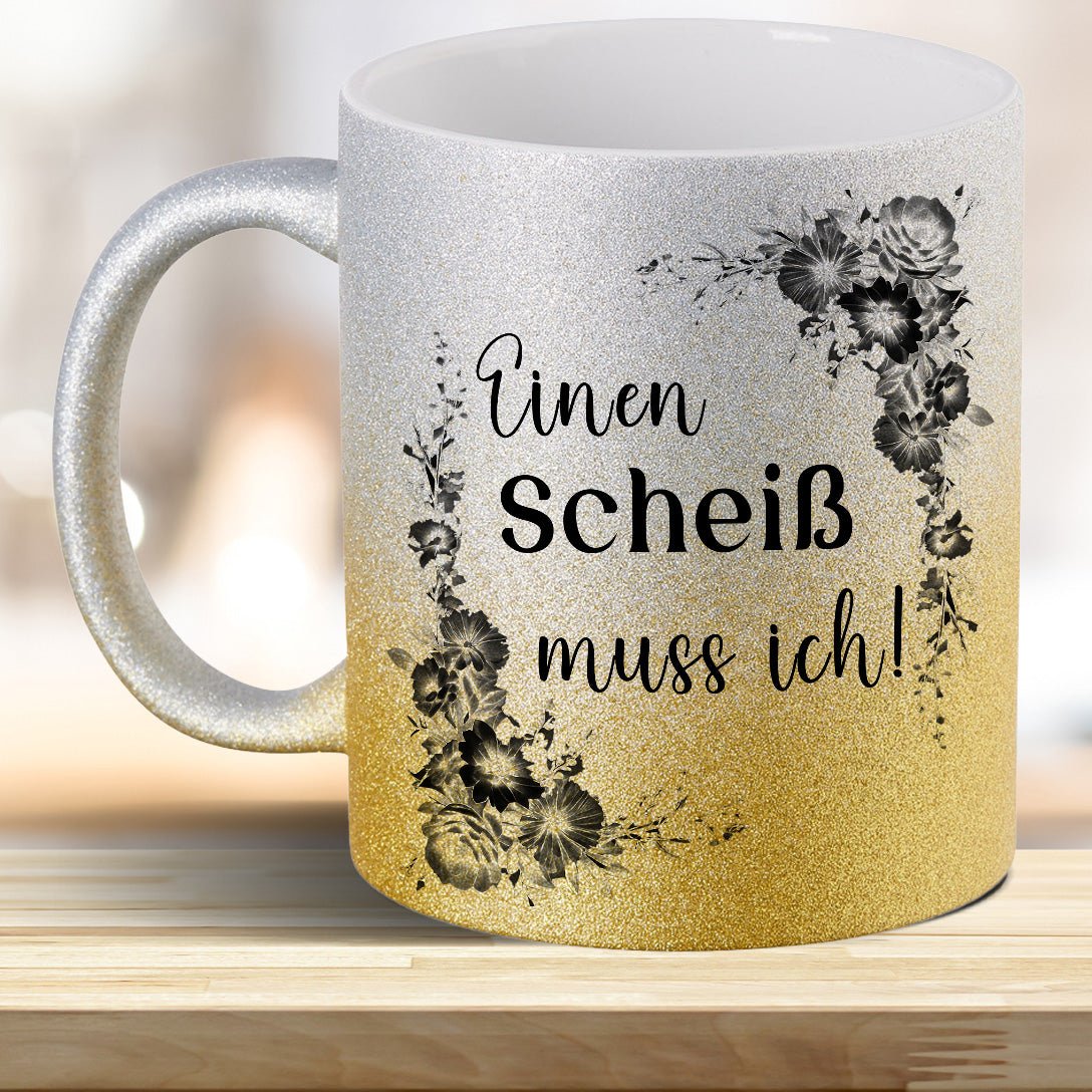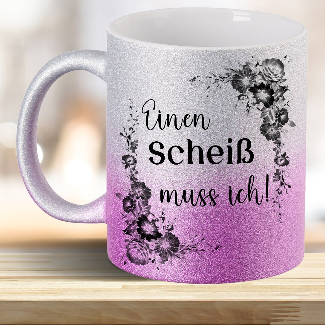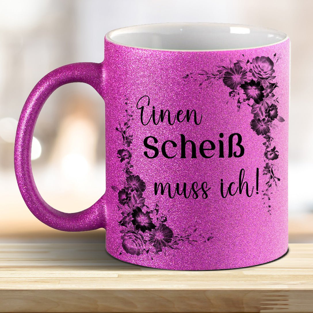 Entdecke unsere Einen Scheiß muss ich! Tasse mit Glitzereffekt mit trendigen Farben