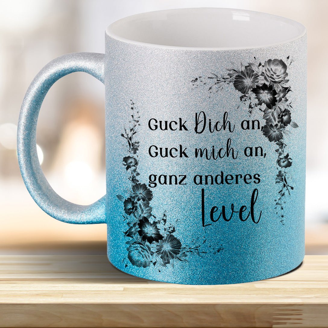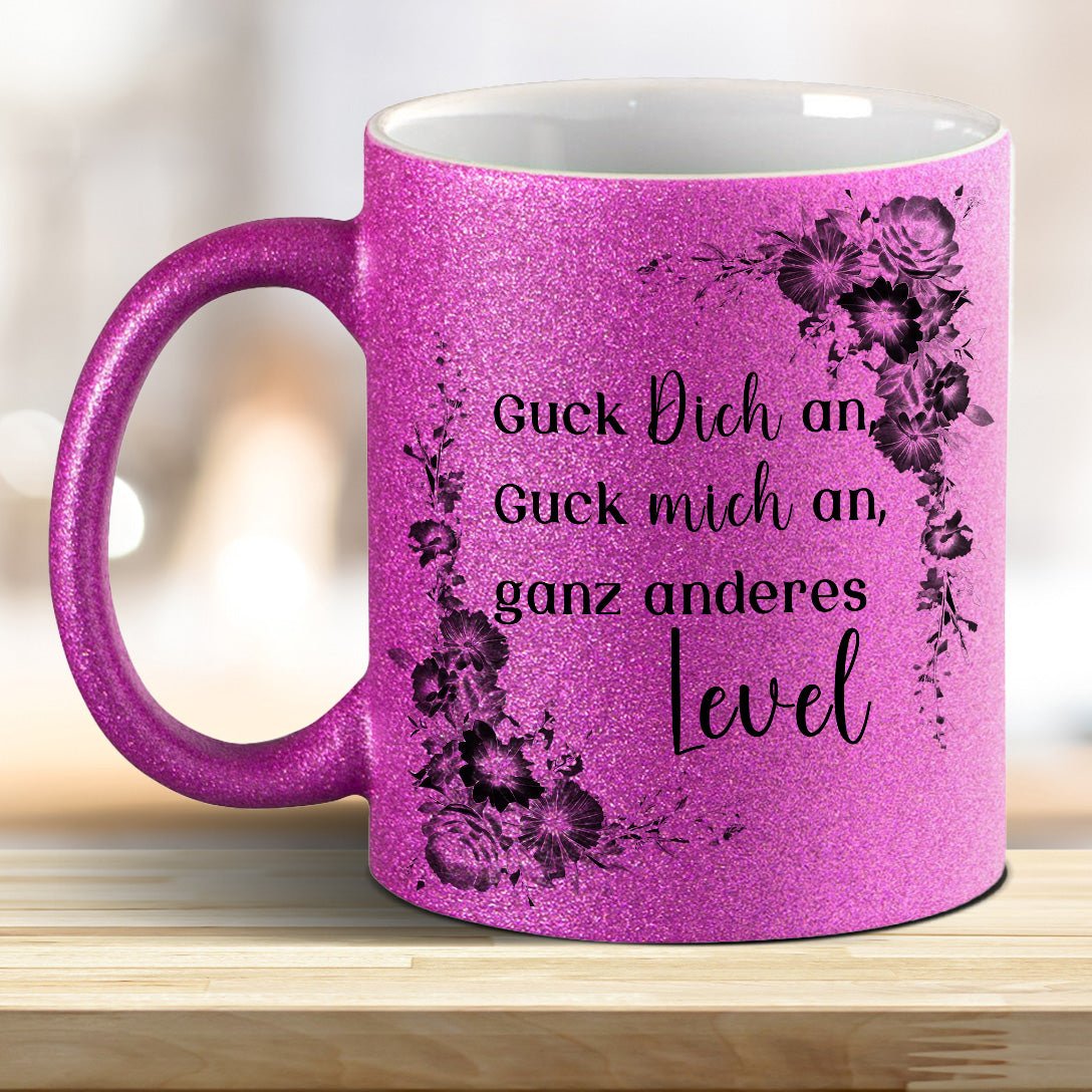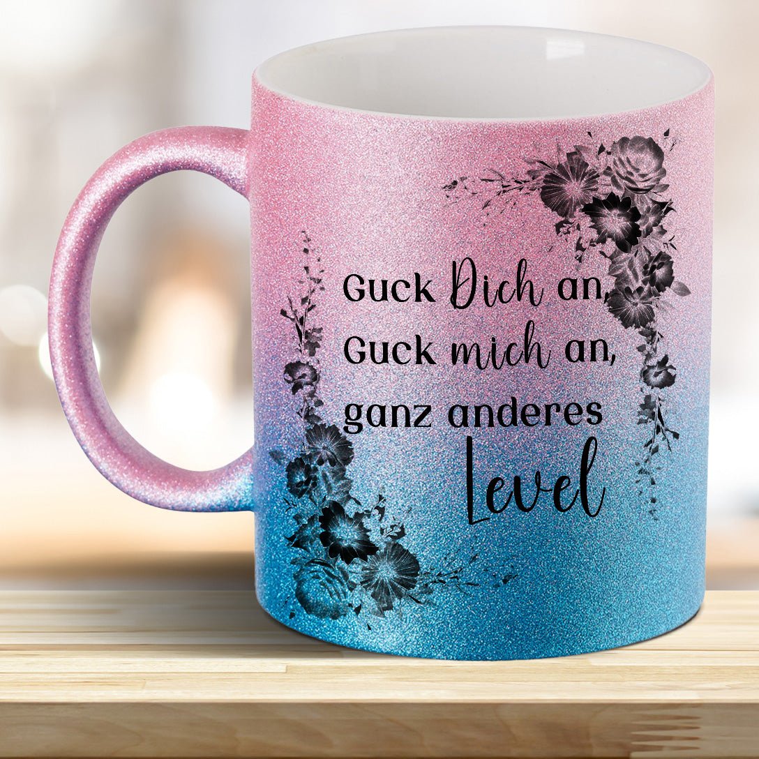 Entdecke unsere Guck mich an, Guck Dich an, ganz anderes Level! Tasse mit Glitzereffekt mit trendigen Farben