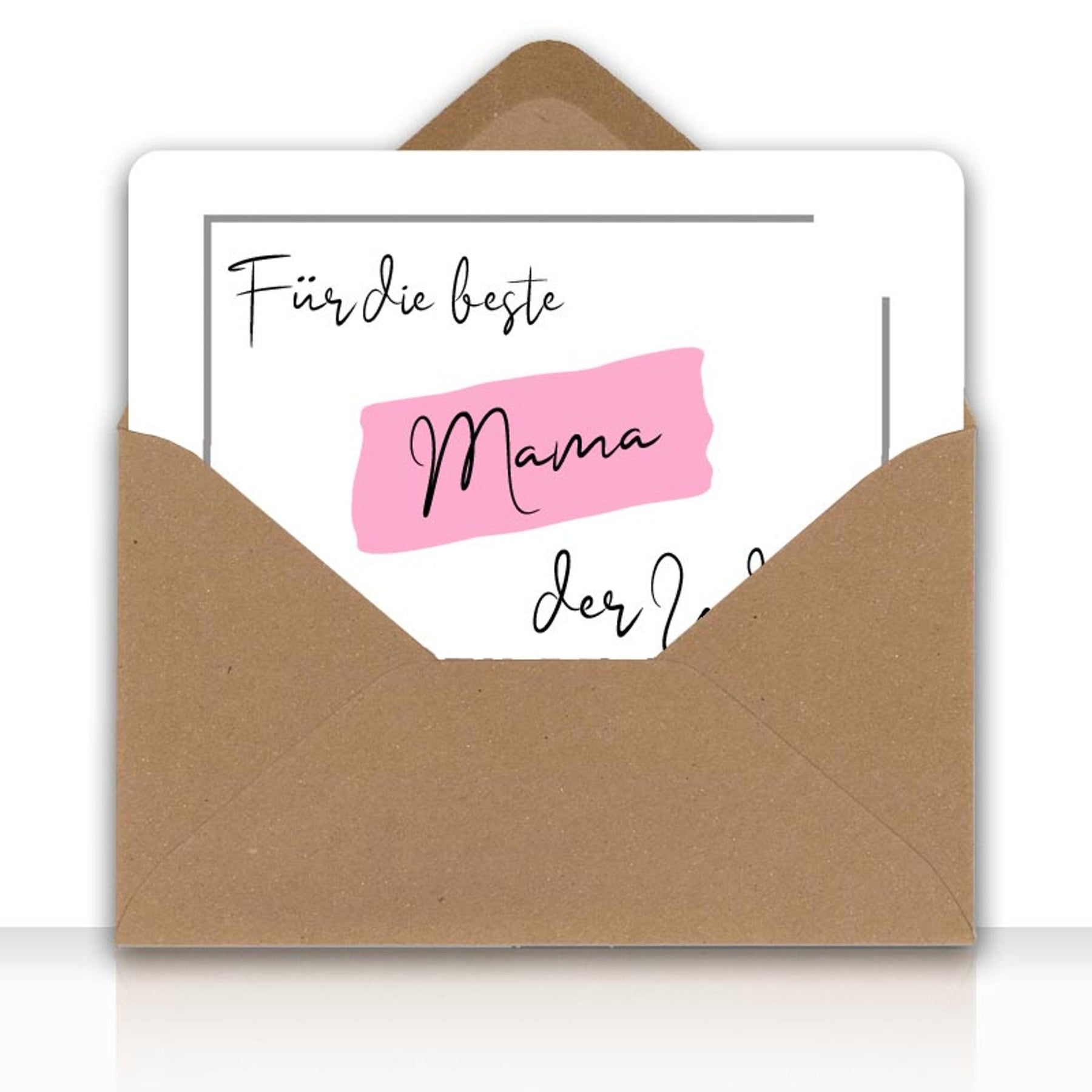Grusskarte Message Liebe FÜR DIE BESTE MAMA DER WELT mit Kraftpapier DIN C6 Umschlag