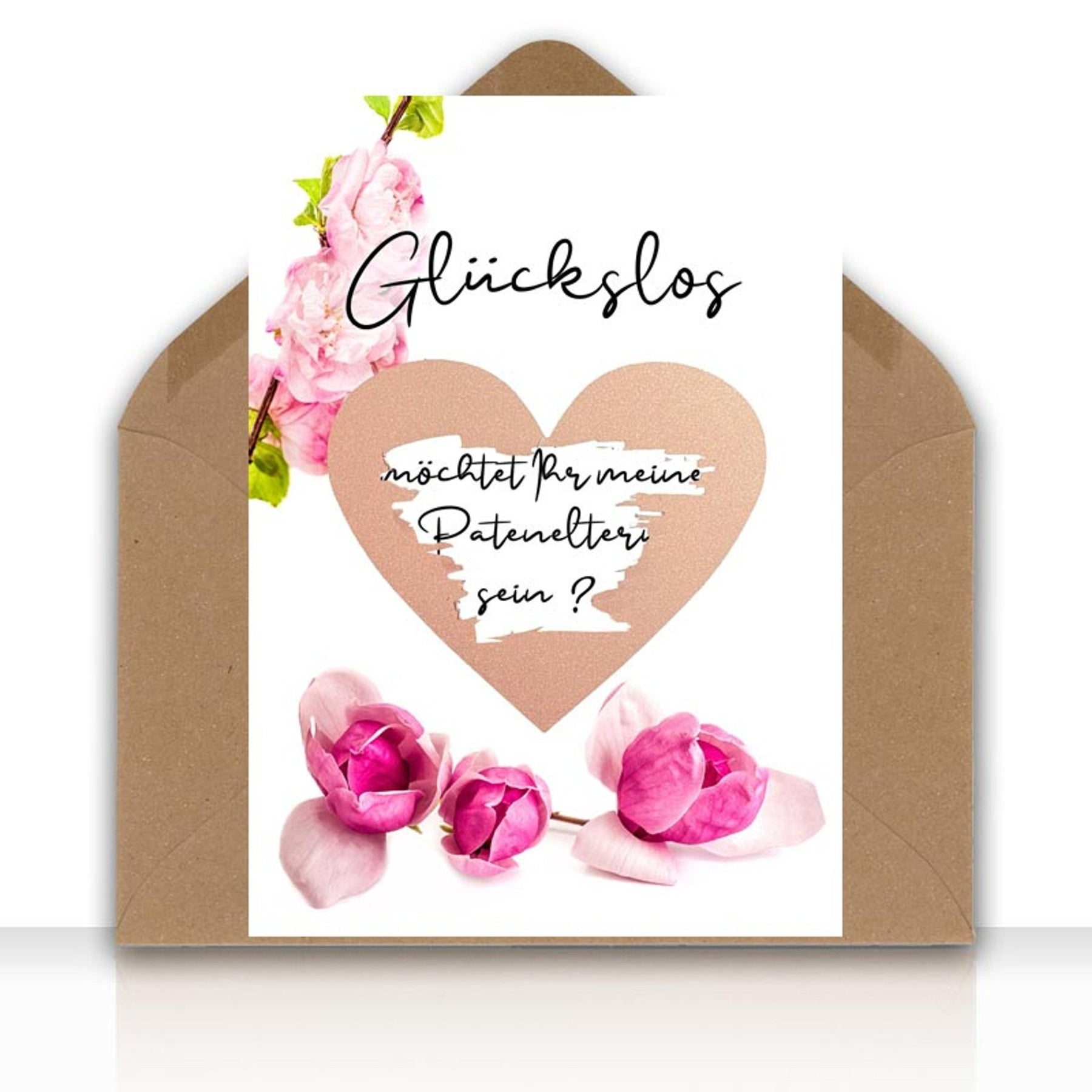 Rubbelkarte Glückslos MÖCHTET IHR MEINE PATENELTERN SEIN Karte Rubbelherz roségold mit Kraftpapier DIN C6 Umschlag