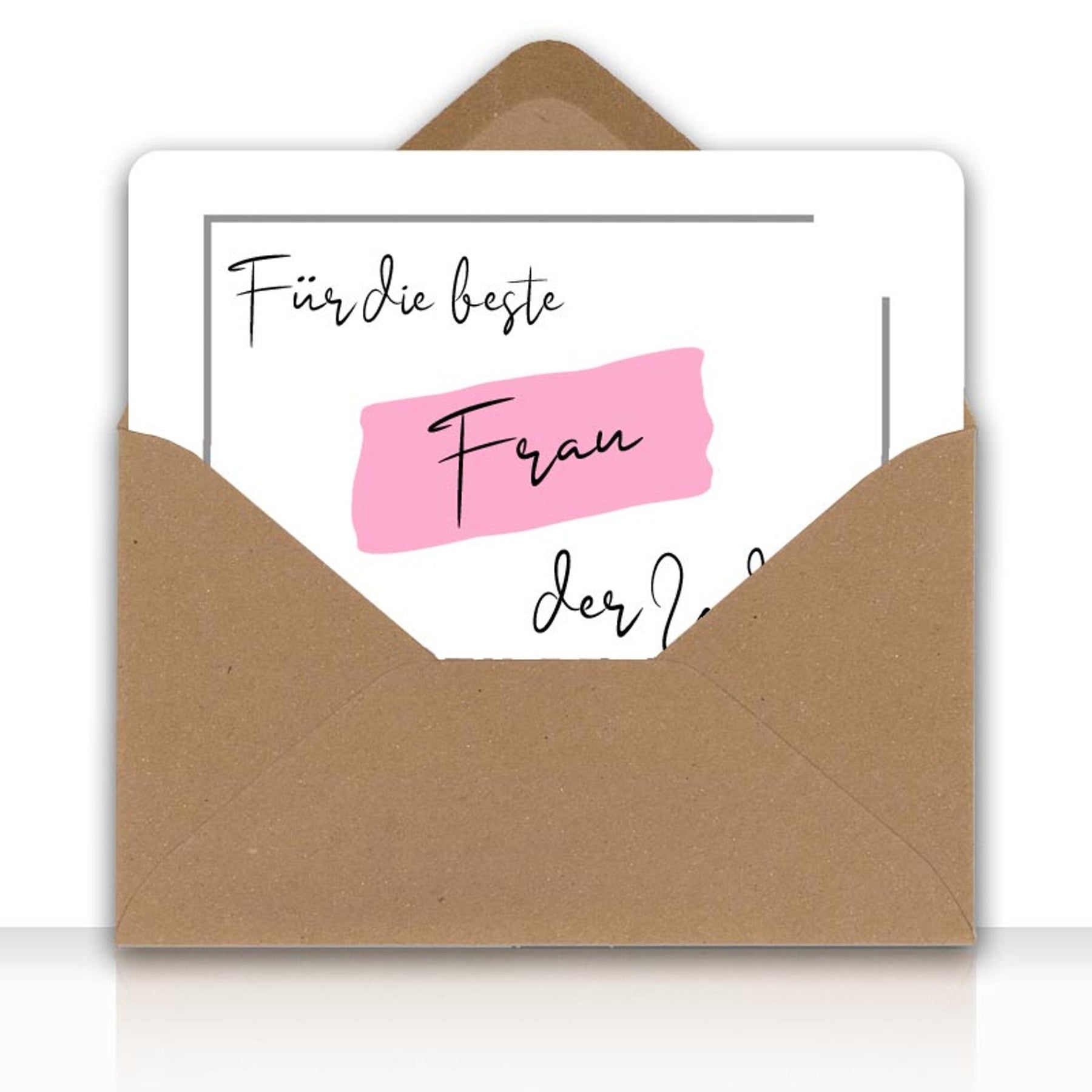 Grusskarte Message Liebe FÜR DIE BESTE FRAU DER WELT mit Kraftpapier DIN C6 Umschlag - all - yours24