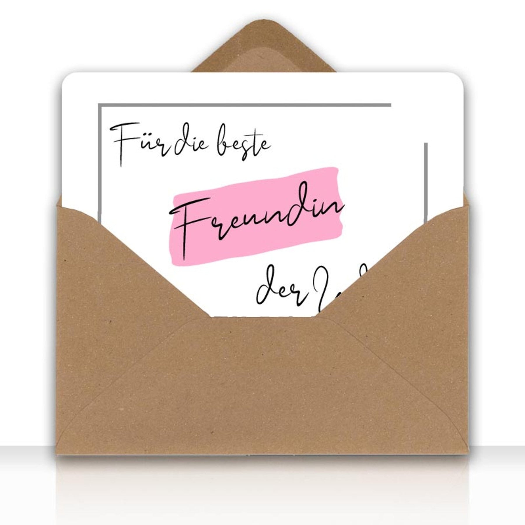 Grusskarte Message Liebe FÜR DIE BESTE FREUNDIN DER WELT mit Kraftpapier DIN C6 Umschlag - all - yours24