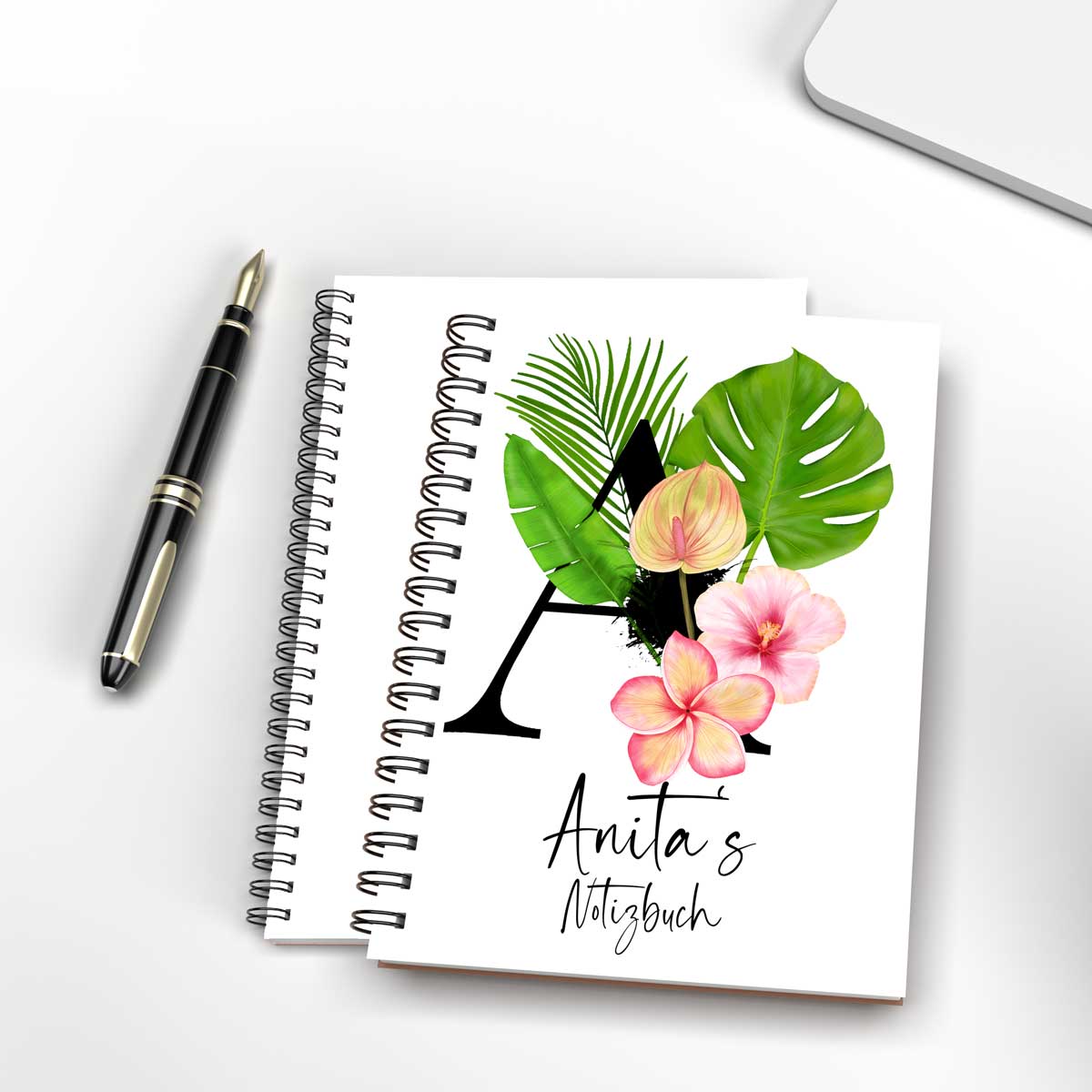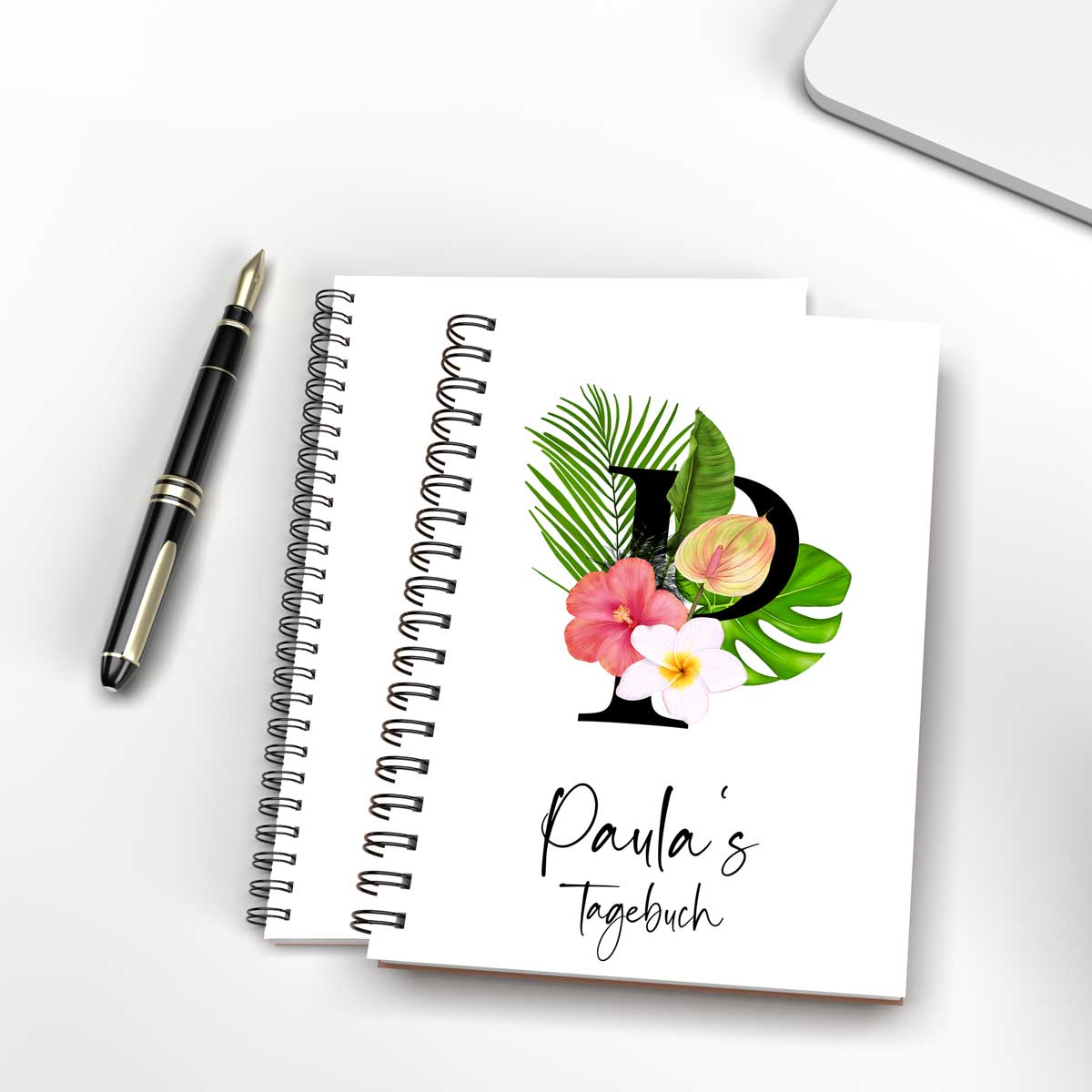 Notizbuch DIN A5 personalisiert Blumen Anfangsbuchstabe Name kariert gepunktet liniert